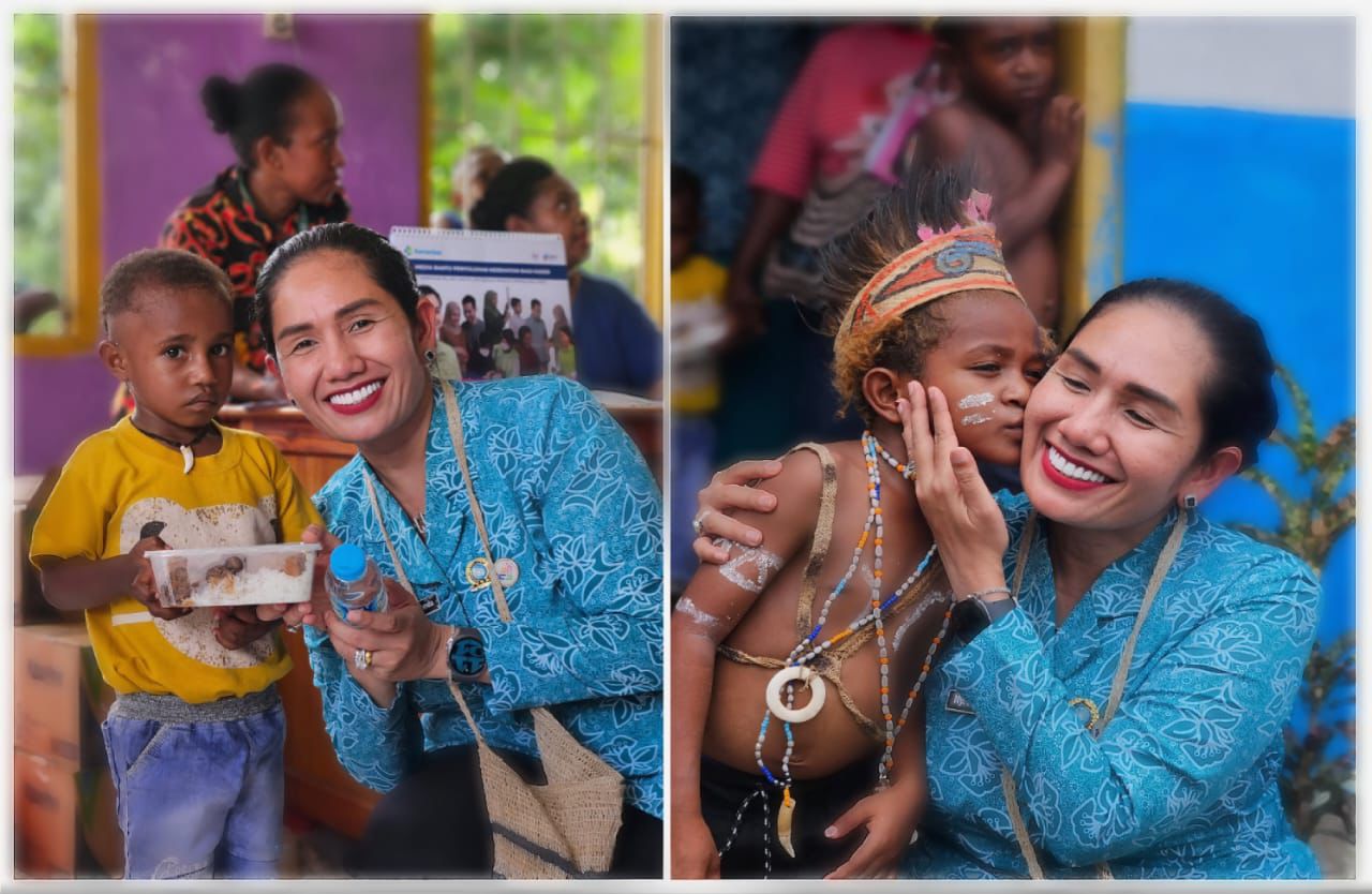 Selain menyerahkan bantuan makanan, Ny. Dewi juga menyampaikan pesan penting bagi para ibu terkait pemeriksaan kehamilan rutin, konsumsi makanan bergizi bagi ibu hamil dan anak-anak, serta peran aktif masyarakat dalam mendukung program TP PKK guna menurunkan angka stunting di distrik tersebut.